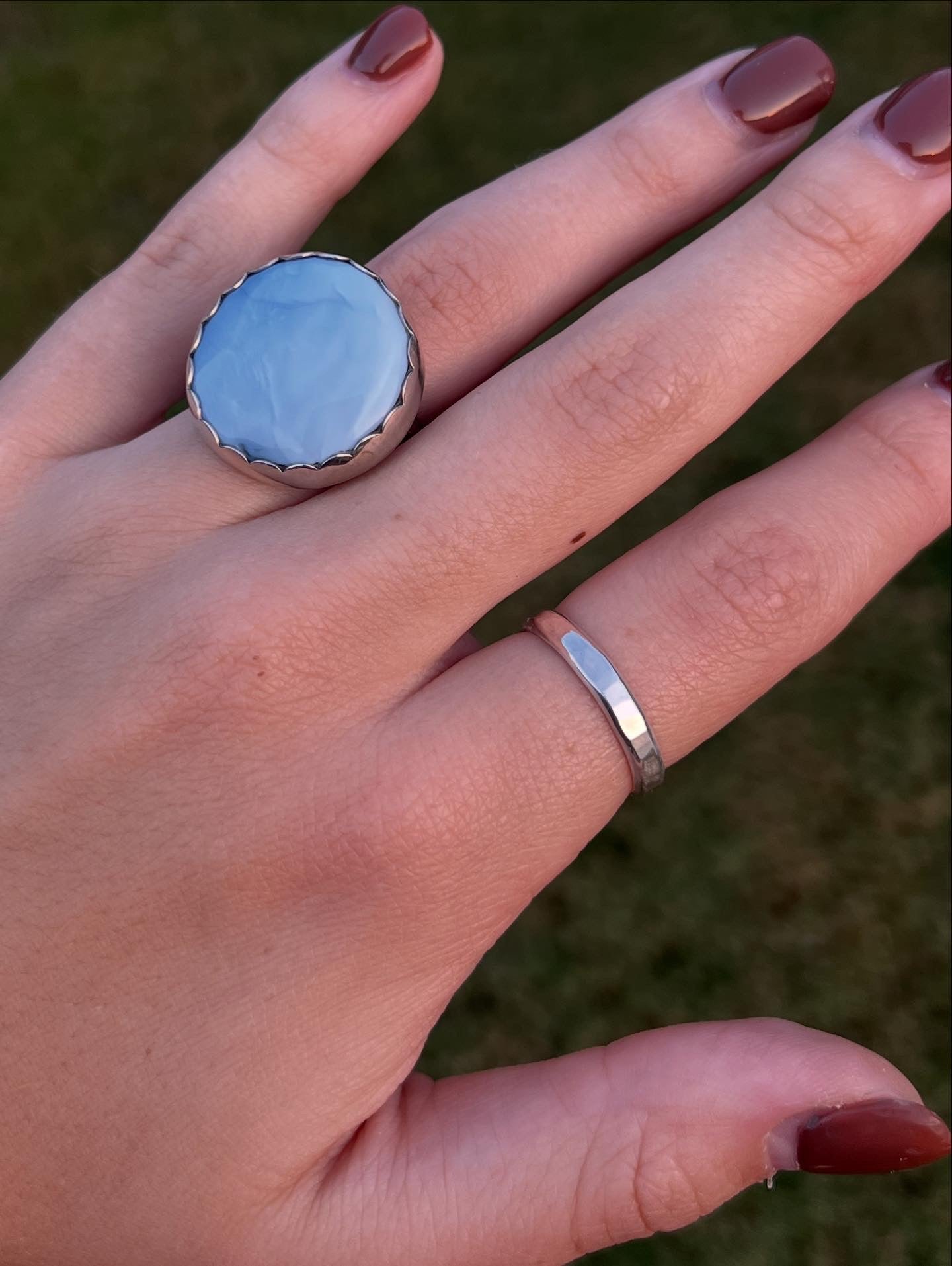 This classic hammered ring is a timeless staple—handcrafted from solid .925 sterling silver with a slightly thicker band for a bold yet refined look. The hammered texture catches the light beautifully, adding a touch of shine and character to any stack or worn solo.